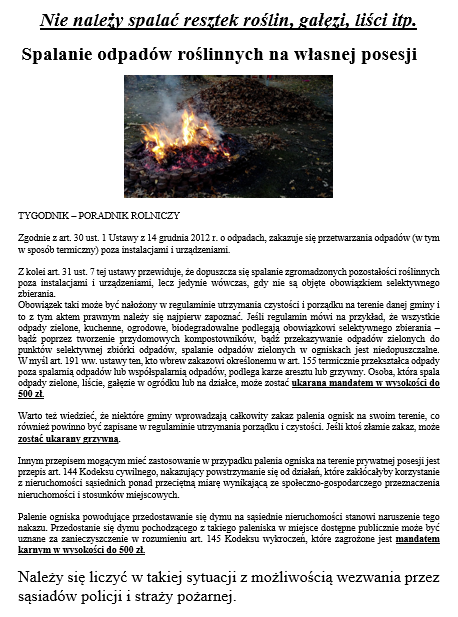 NIE MOŻNA SPALAĆ RESZTEK ROŚLIN, GAŁĘZI, LIŚCI ITP. !!!!!